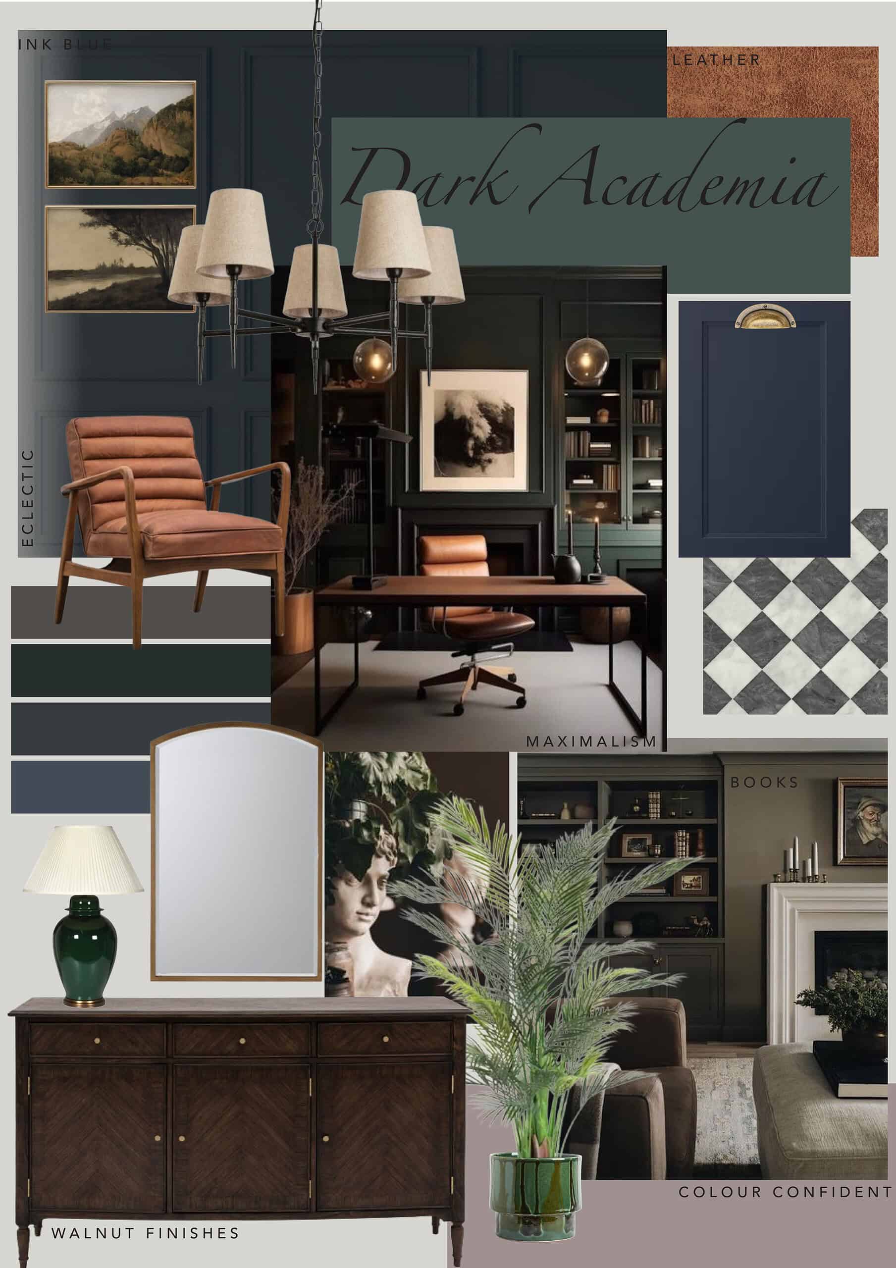 Popular for the last couple of years because of TikTok and Instagram, dark academia has become a style to watch. It’s not for everyone as it embraces a bold, moody decor but can certainly make an impact.